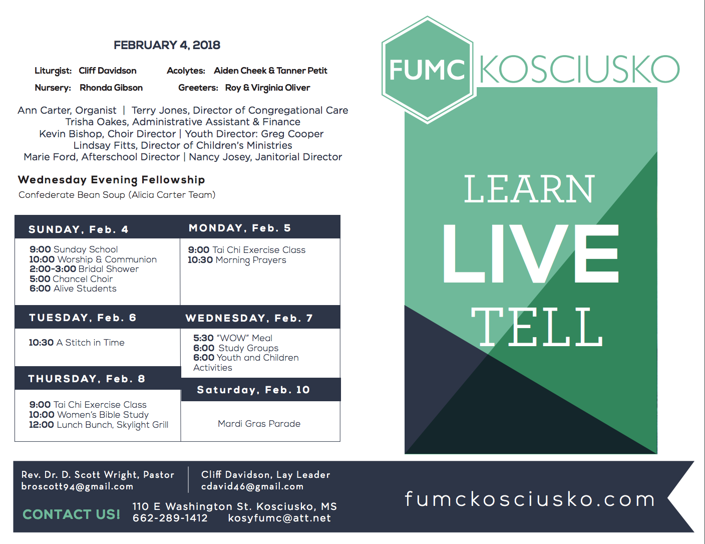 Bulletin for Week of Feb 4, 2018